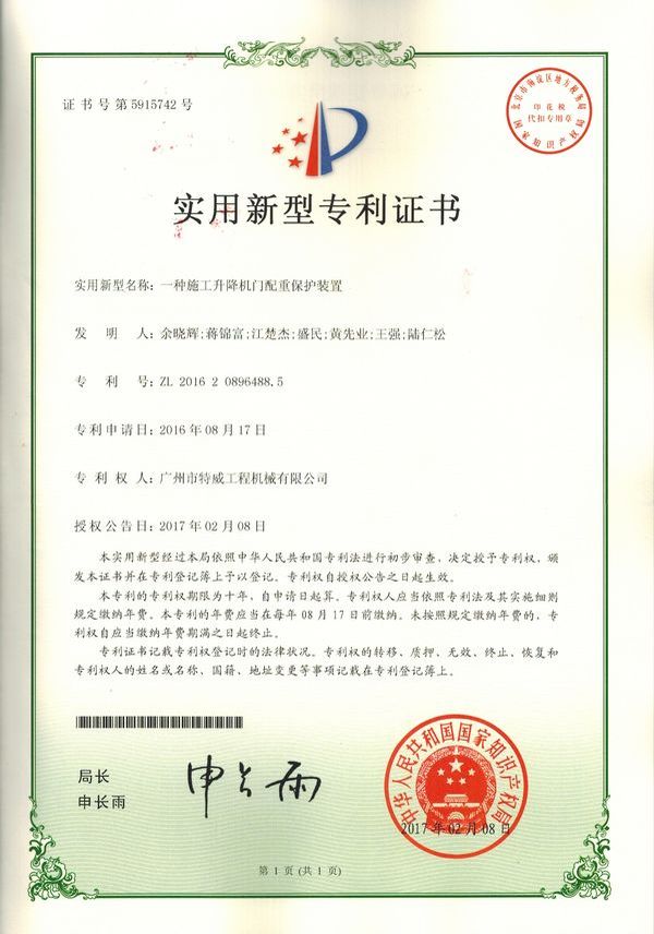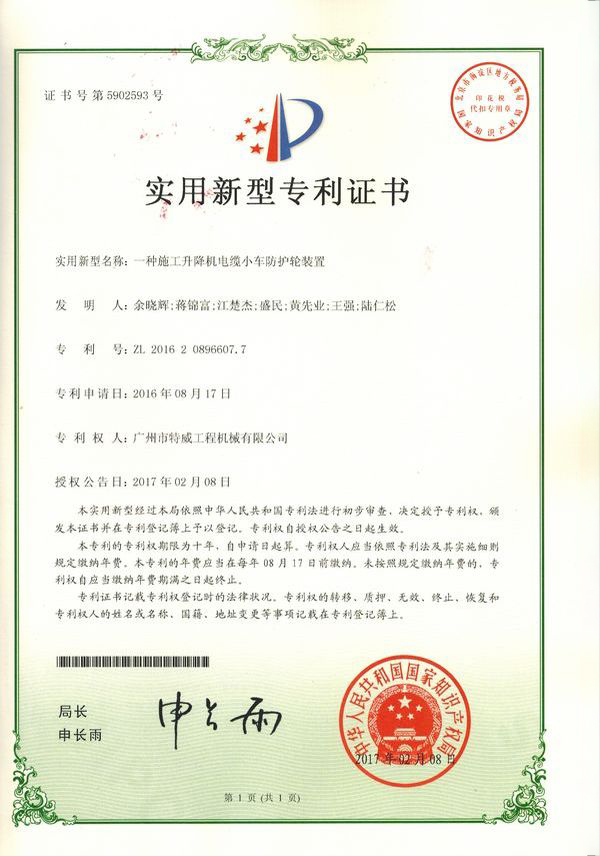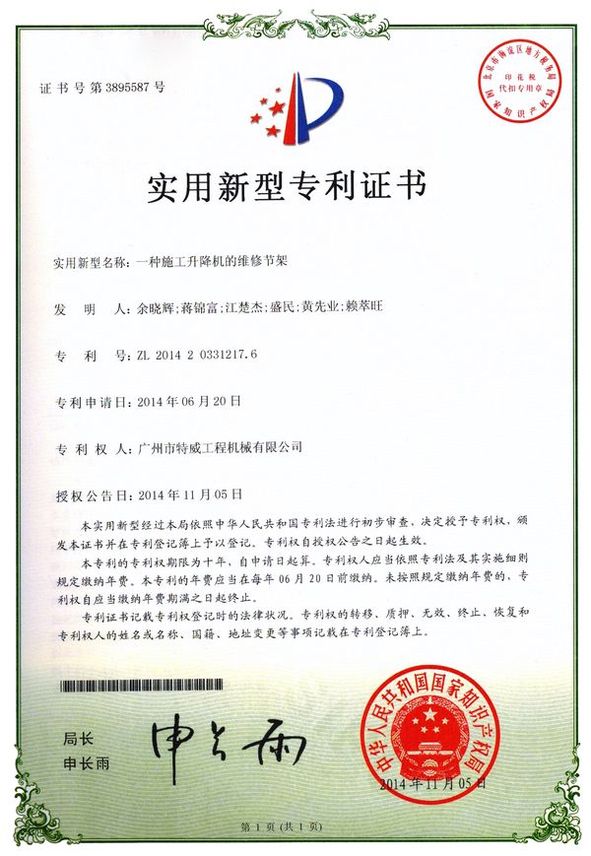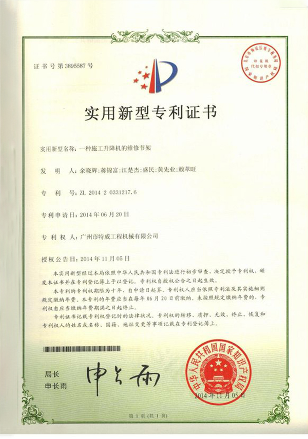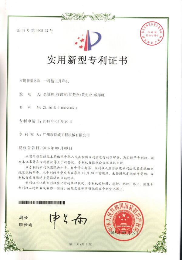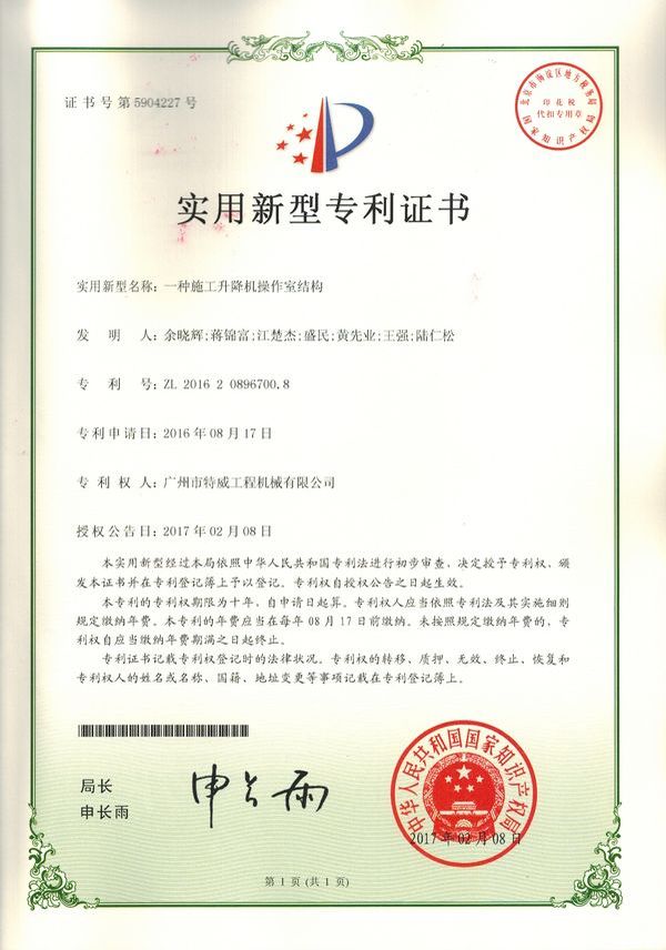 廣州市特威工程機(jī)械有限公司地處廣州市白云區(qū)神山鎮(zhèn),廣清高速神山出口附近,是一家施工升降機(jī)的專業(yè)生產(chǎn)廠家。公司成立于2011年,占地100000多平方米,注冊(cè)資金1060萬元,現(xiàn)有員工300余人其中工程技術(shù)人員33人,高級(jí)技術(shù)人員52人。